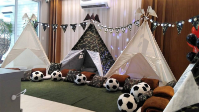 A tenda coletiva cria um ambiente confortável e lúdico, ideal para crianças que querem dormir todas juntinhas. Bom para atividades e momentos de convivência que estimulam criatividade, bem-estar e memórias afetivas